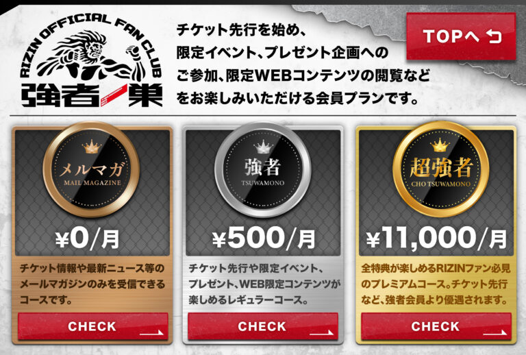 • Rizin – Main Menu